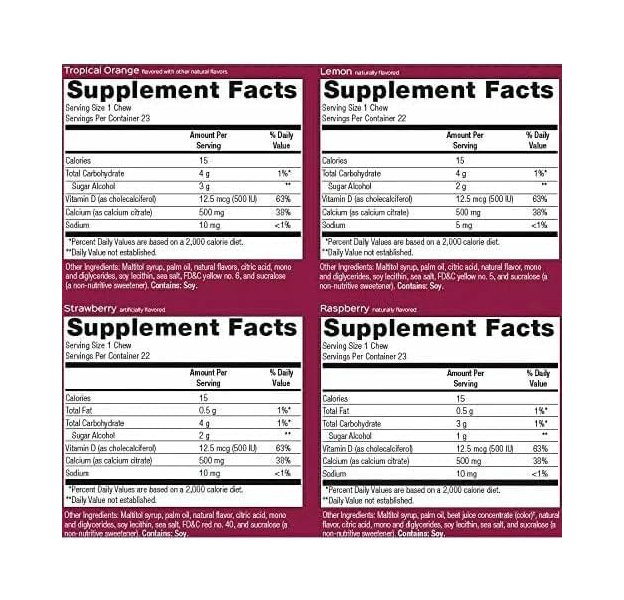 • 500 mg of Calcium Citrate per chew
