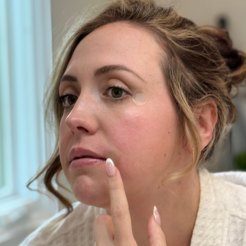 2. Apply patch directly over the blemish. Press gently for a few seconds to activate the microneedles.