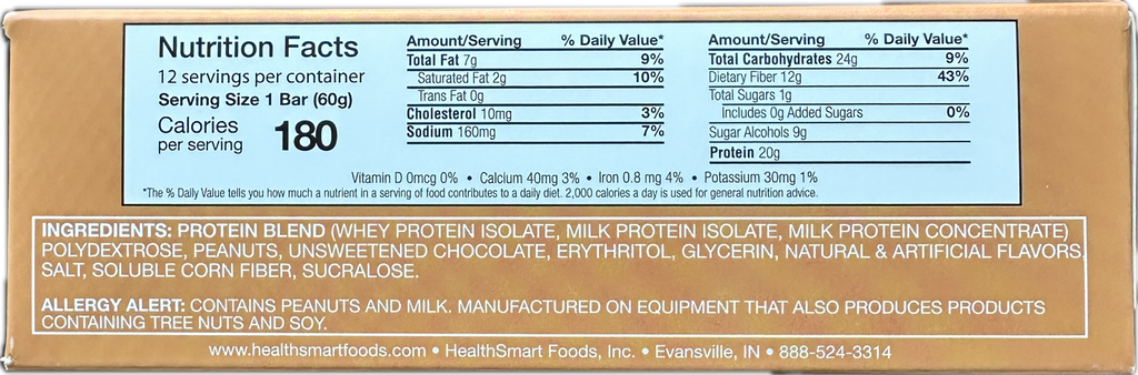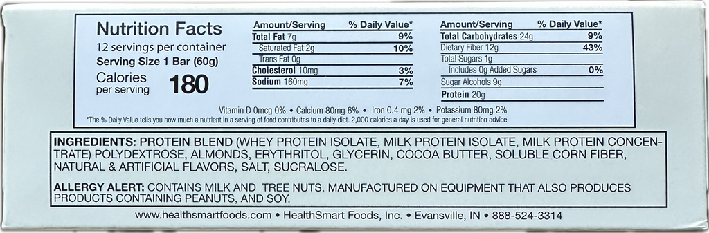 Healthsmart At Last! Uncoated Protein Bars are large 60g protein bars that deliver a clean, delicious taste with the highest quality Whey Protein and Milk Proteins. These low carb, low sugar, gluten free protein bars are great as a large snack or meal replacement. Healthsmart At Last! Uncoated Protein Bars contain zero glycemic impact sweeteners.