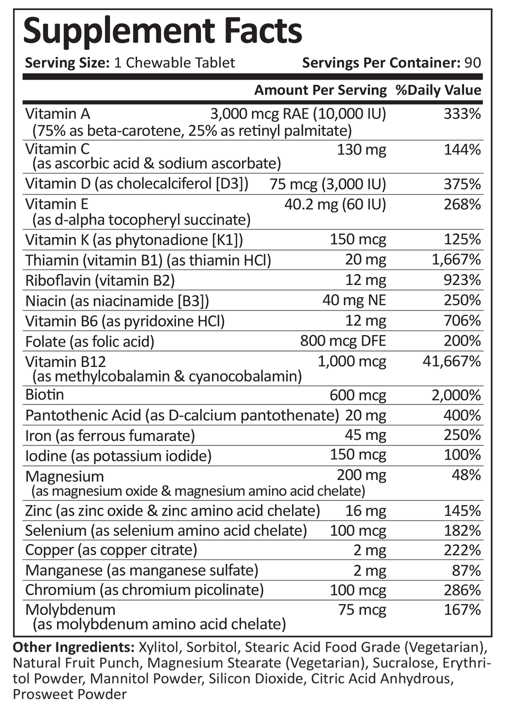 ProCare Health "1 per Day!" Bariatric MultiVitamin with 45mg Iron, Fruit Punch Flavor, 30 Chewable Tablets