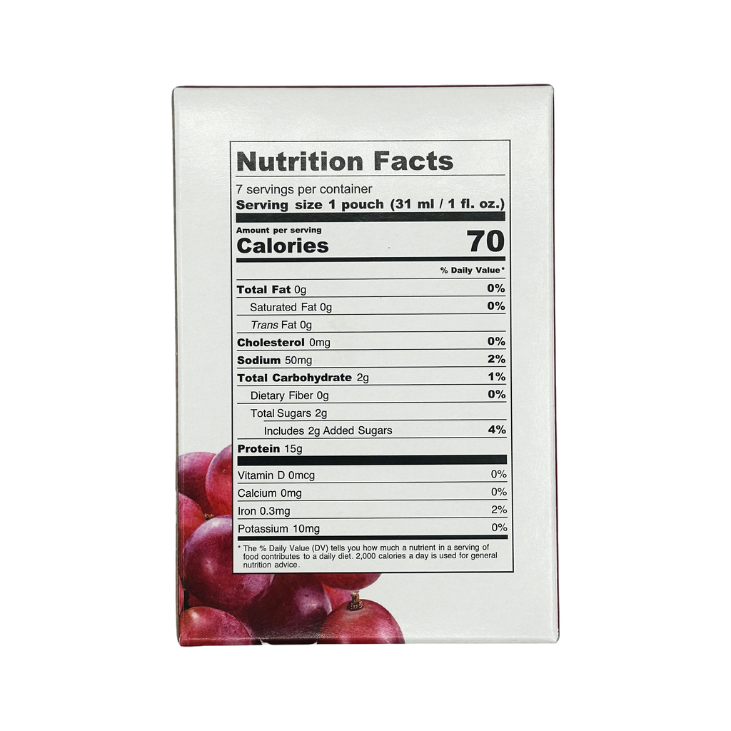 These delightful grape-flavored protein diet drinks come in easy-to-open liquid packets that you simply pour into a glass or bottle of cold water, give it a shake and enjoy!