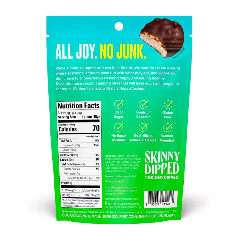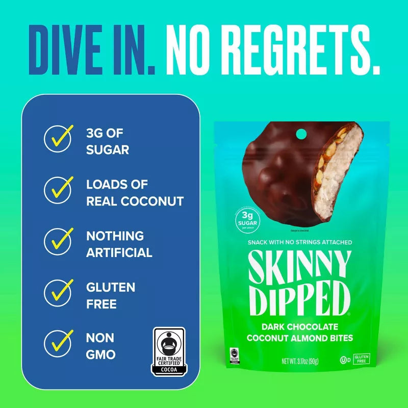 SkinnyDipped Bites Dark Chocolate Coconut Almond Highlights:
