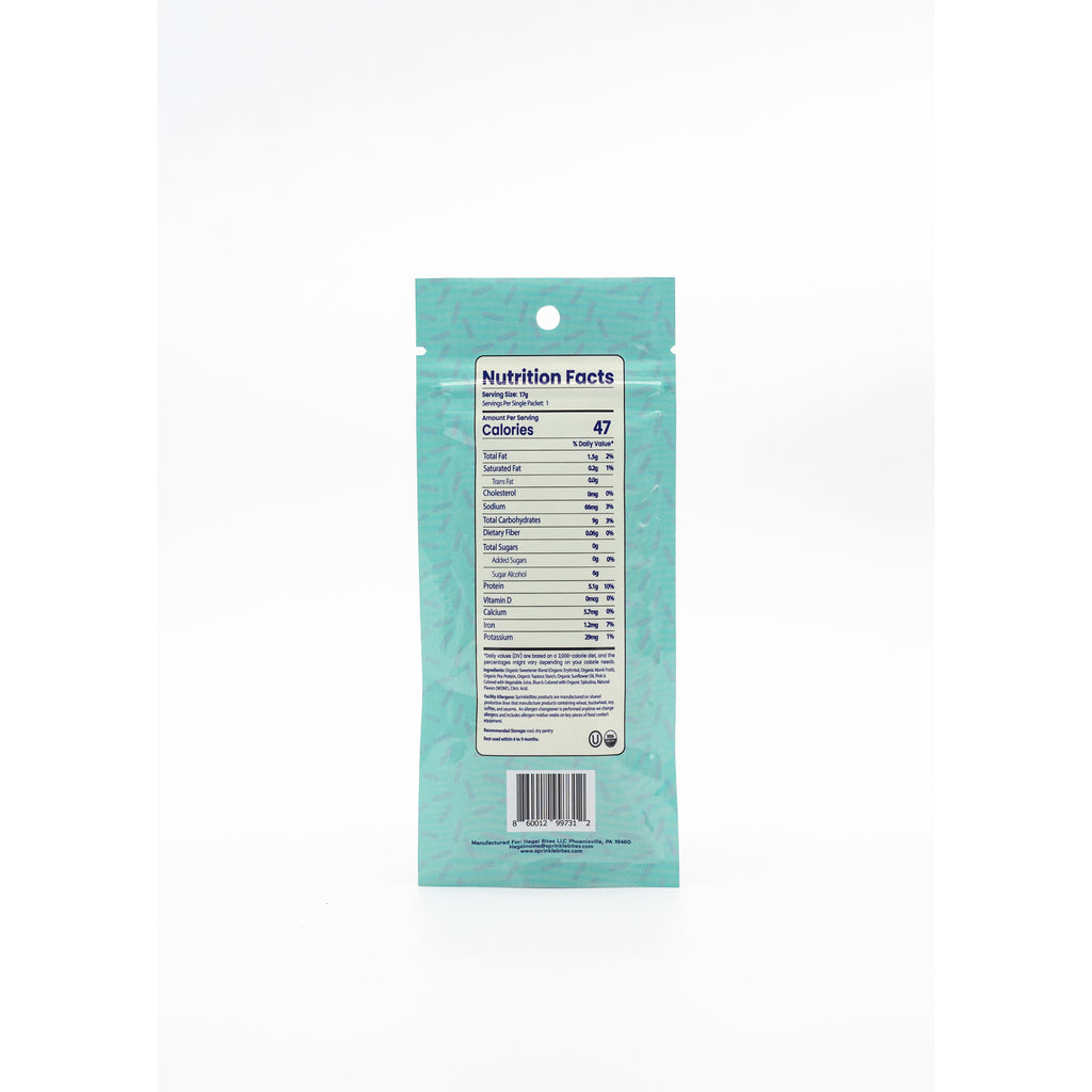 One resealable packet of Sprinkle Bites to be eaten on the go, for breakfast, for lunch, for snack time, on yogurt, on a bagel, whenever you want a sprinkle of joy not junk!